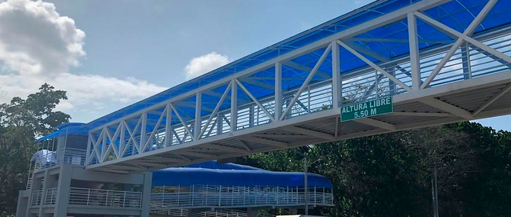 El puente de la Universidad Tecnológica de Panamá (UTP) fue recientemente construido con los mejores materiales y los más altos estándares de calidad. Las coberturas son de policarbonato alveolar.